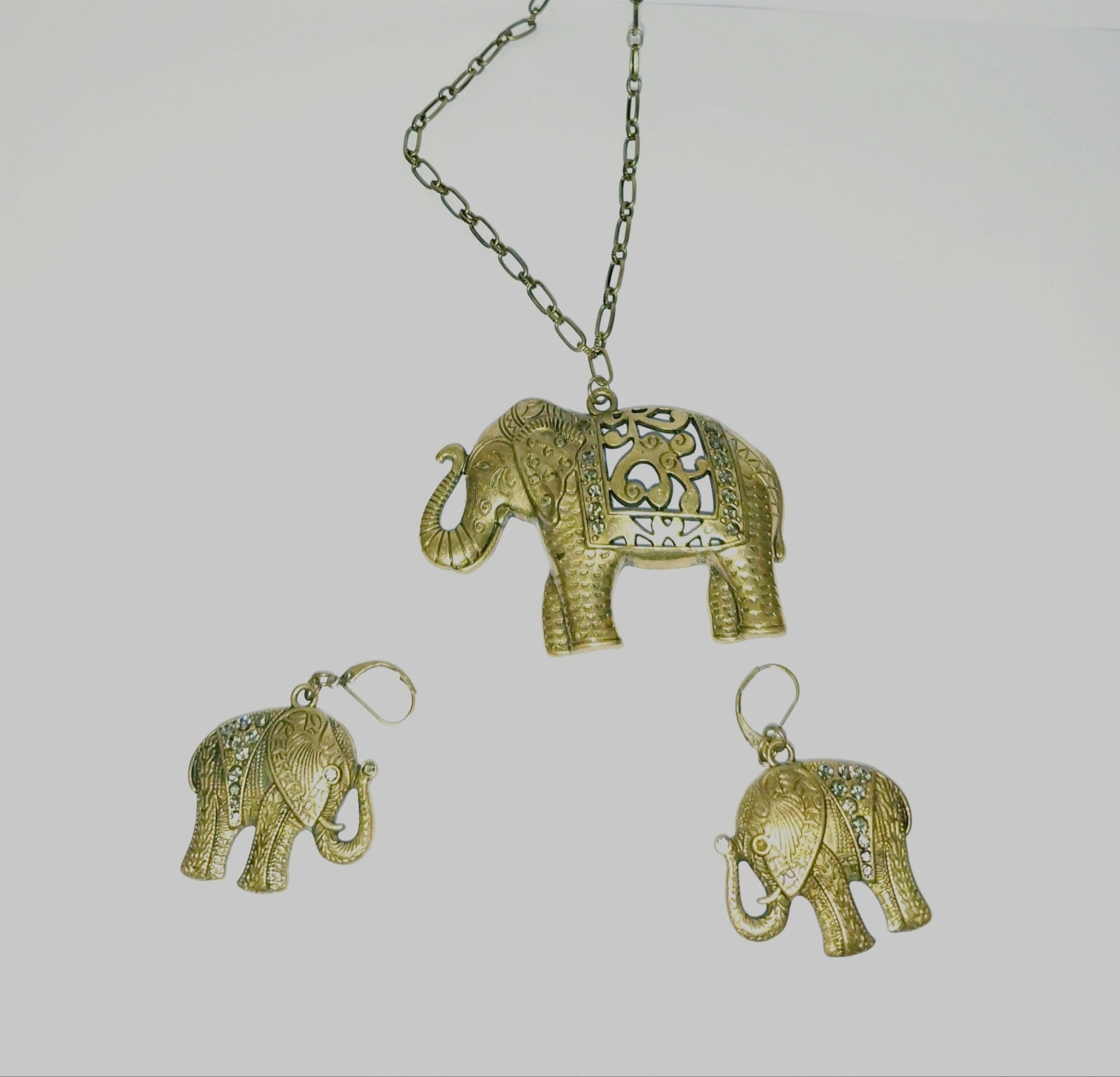 Ensemble bijoux collier et boucles d'oreilles en parfaite état général il manque une crystal pas trop visible couleur bronze