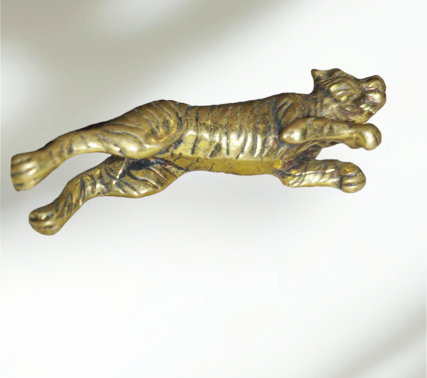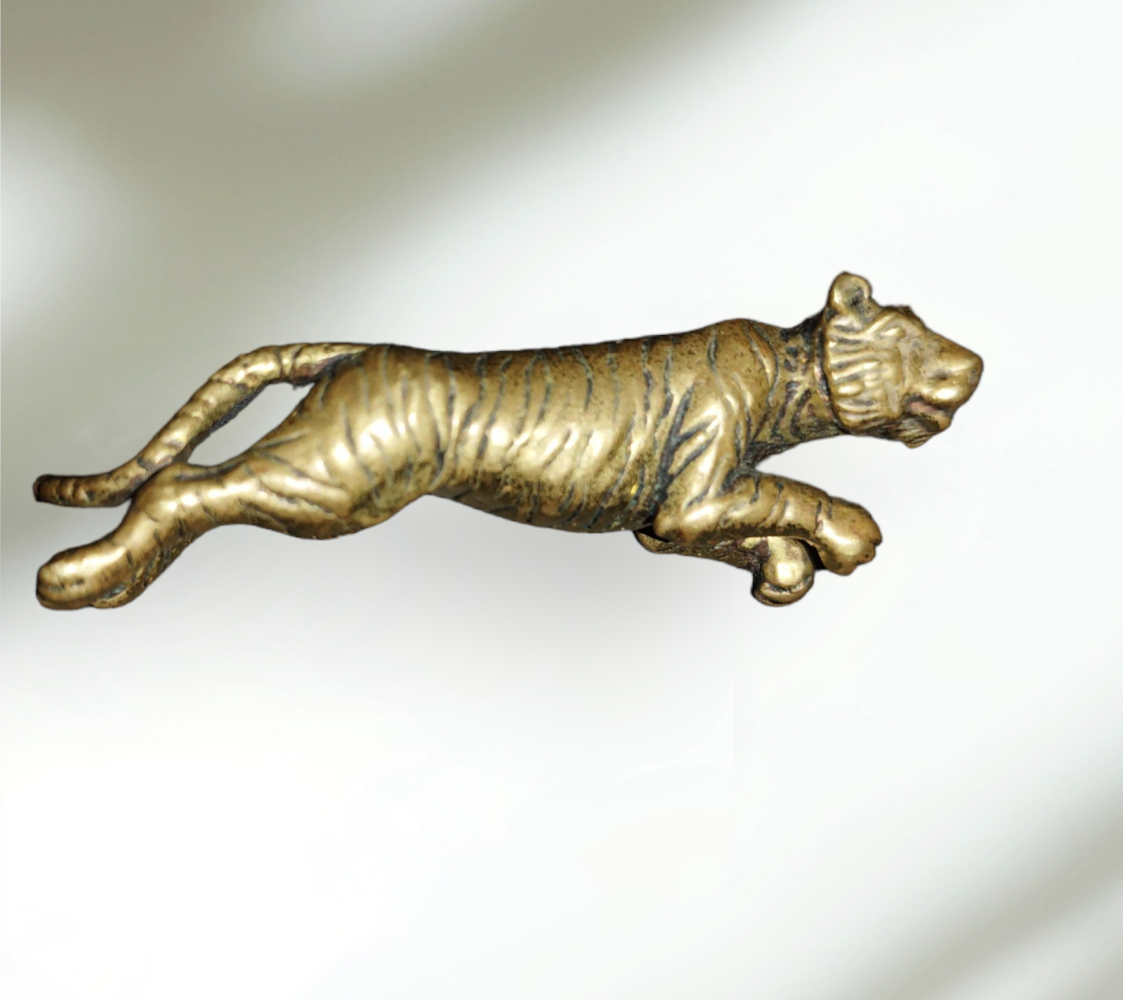 Broche en bronze en forme de tigre., Bijou des années 1975