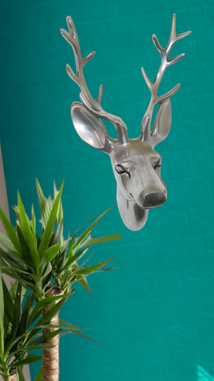 Tête de cerf en aluminium,.décoration murale vintage originale