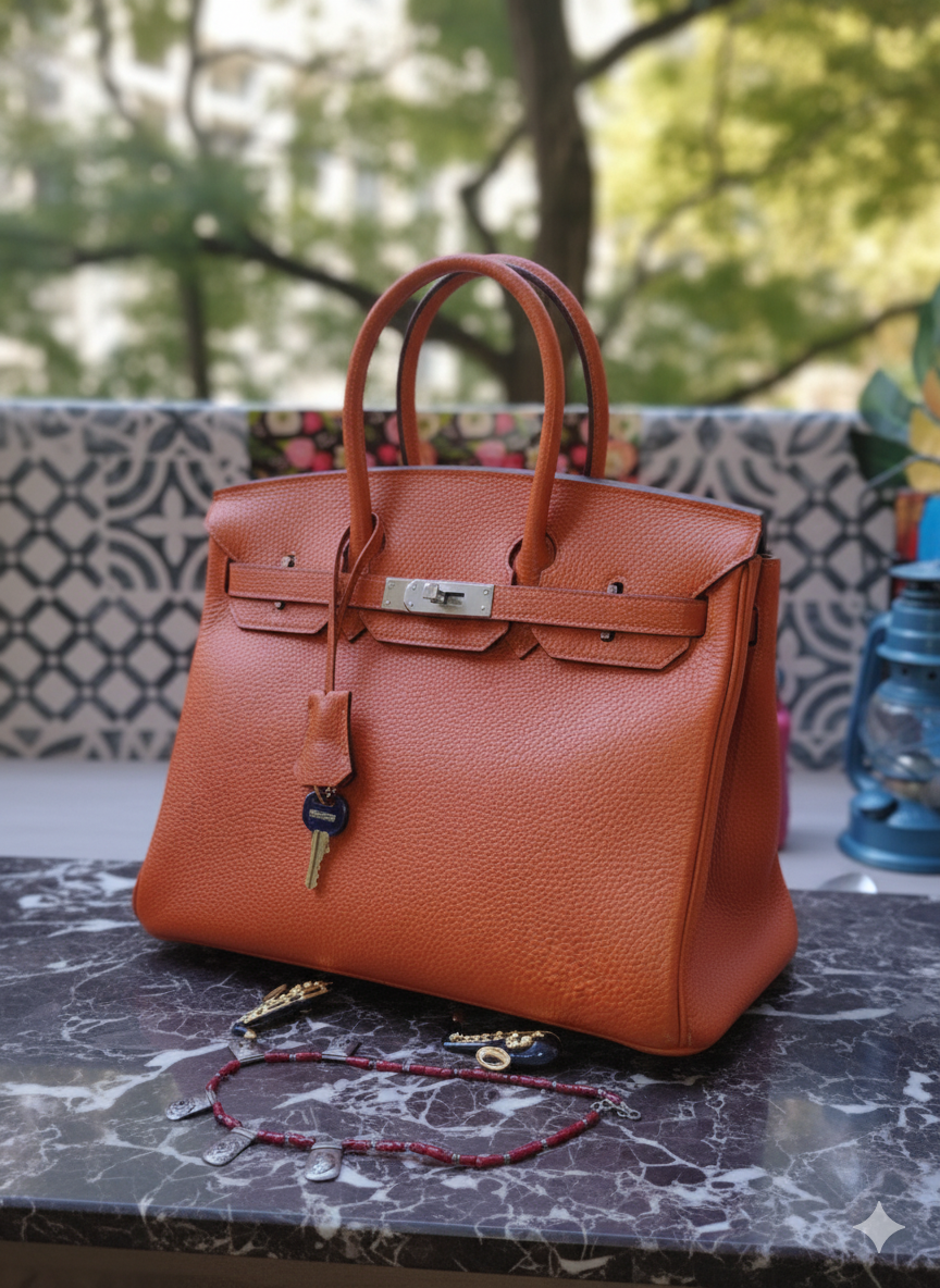 Sac à main Hermès Birkin vintage 35 cuir togo orange