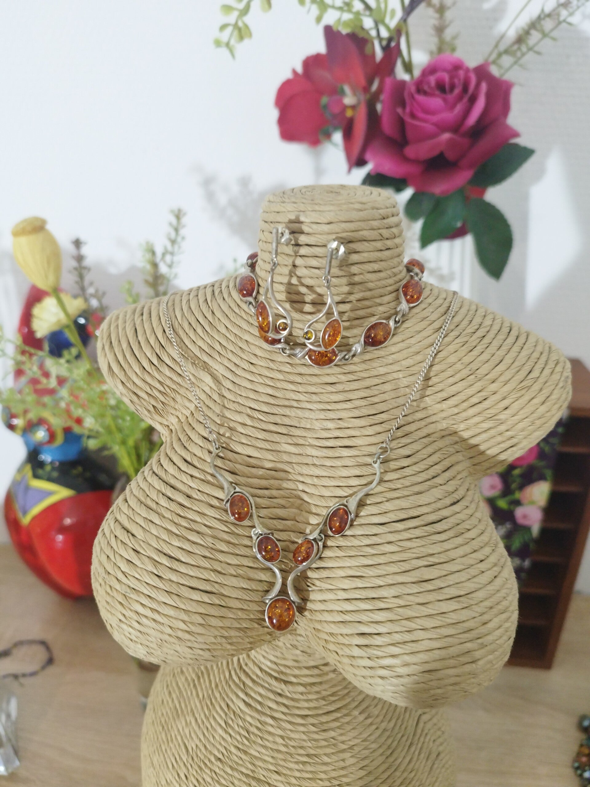 Ensemble de bijoux en argent vintage et Ambre
