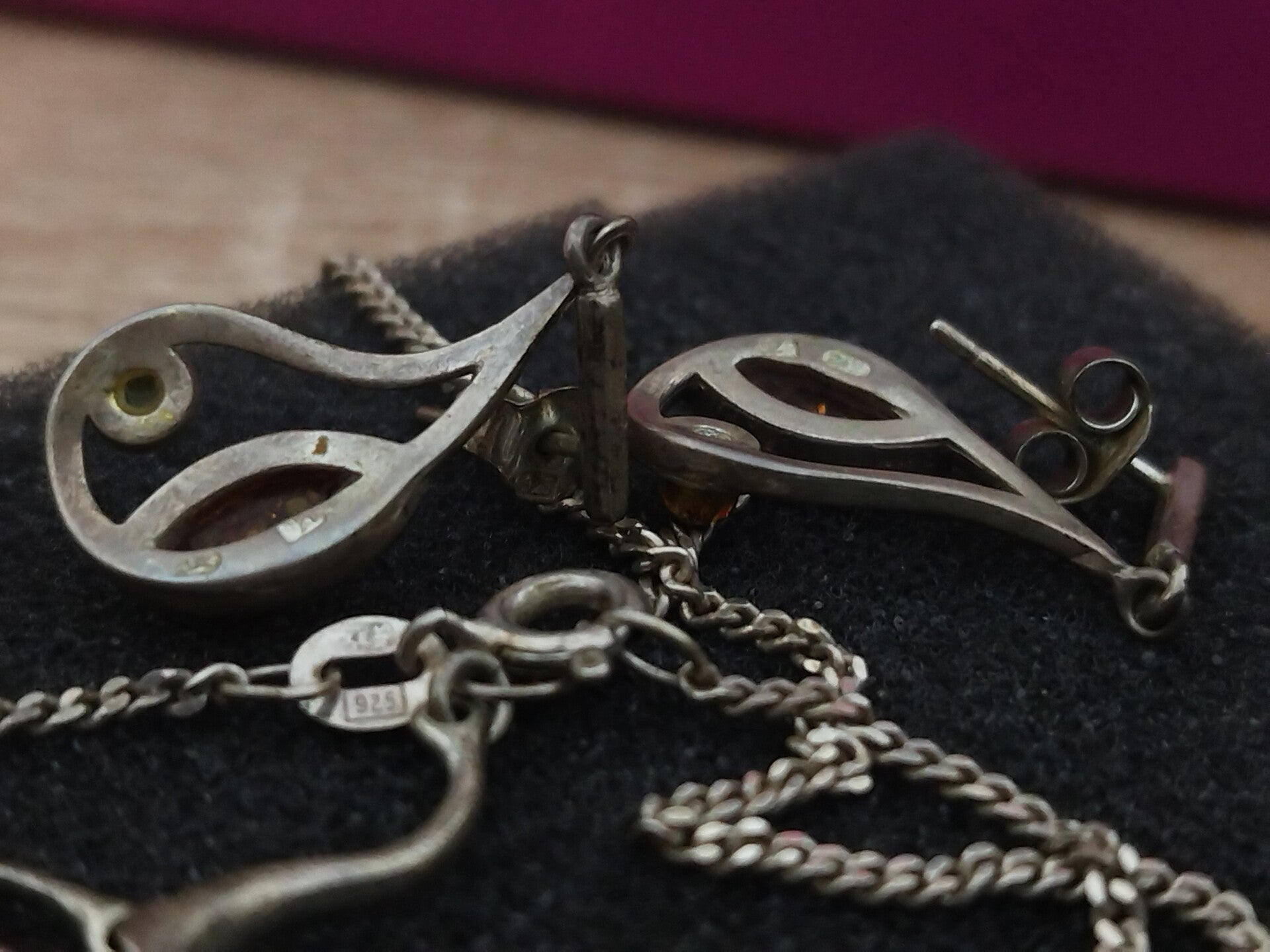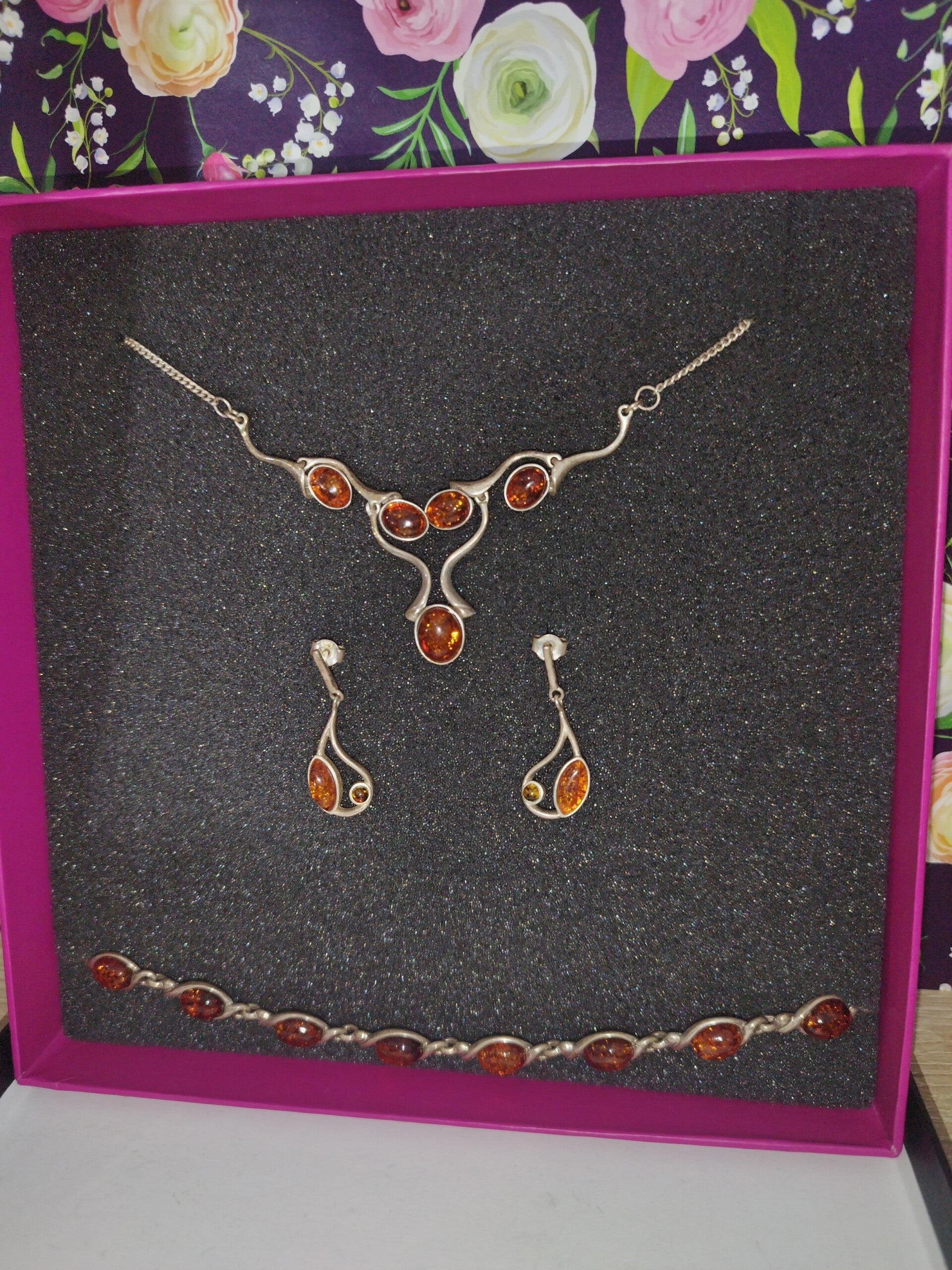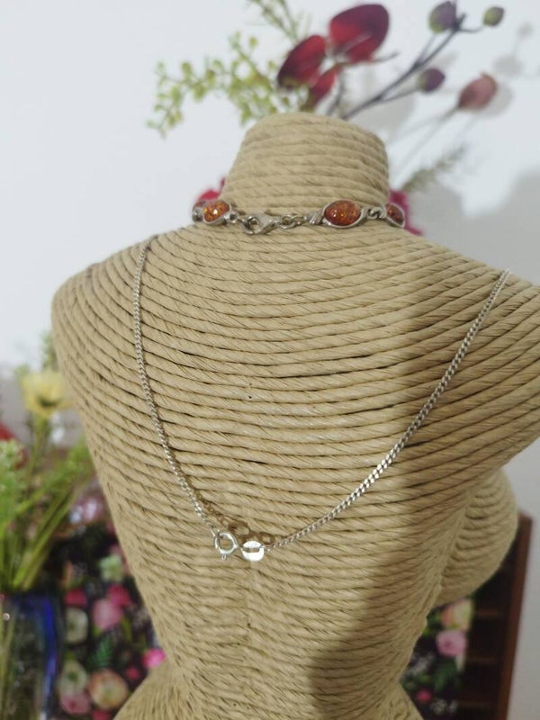 Parure Vintage excellente état, Boucles D'oreilles, Bracelet, Collier En Argent 925 et Ambre pur,